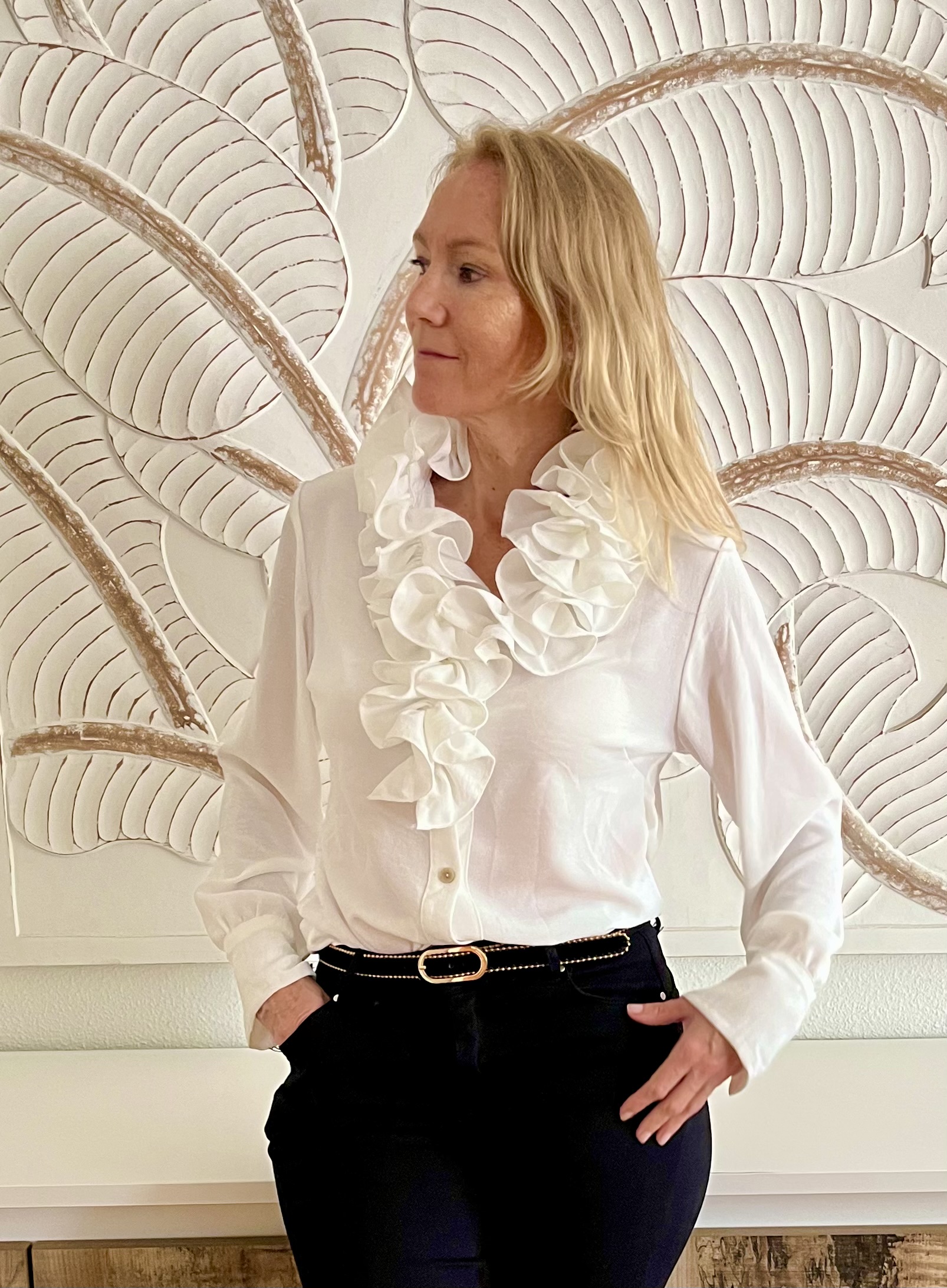 Camisa ligera que destaca por su espectacular cuello con volantes.